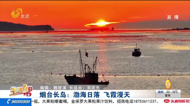 烟台长岛:渤海日落 飞霞漫天