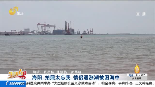 海阳:拍照太忘我 情侣遇涨潮被困海中