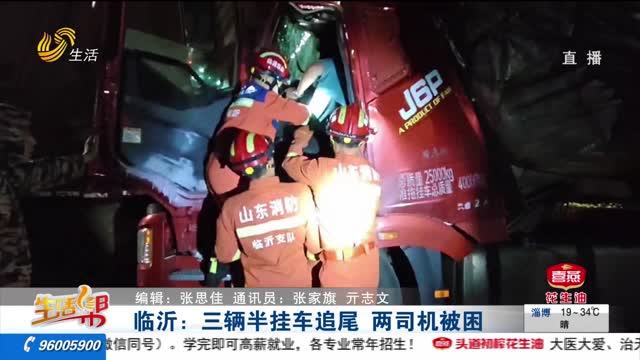 临沂:三辆半挂车追尾 两司机被困
