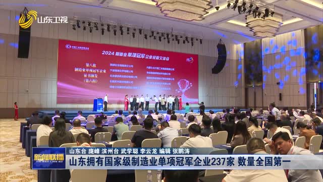 山东拥有国家级制造业单项冠军企业237家 数量全国第一
