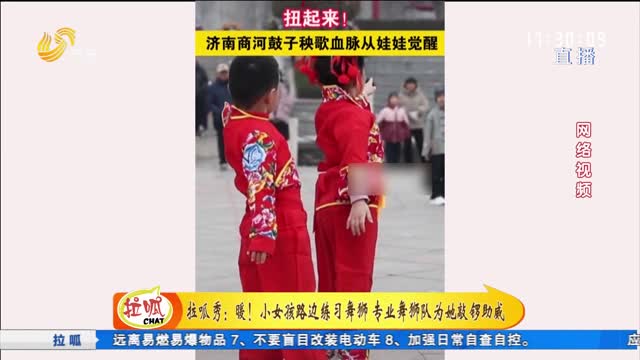 拉呱秀:暖!小女孩路边练习舞狮 专业舞狮队为她敲锣助威