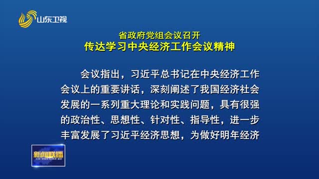 省政府党组会议召开 传达学习中央经济工作会议精神