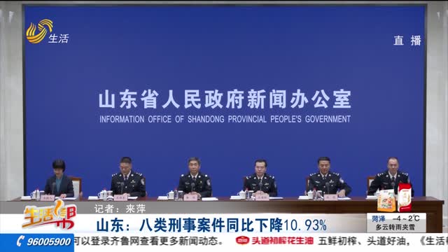 山东:八类刑事案件同比下降10.93%
