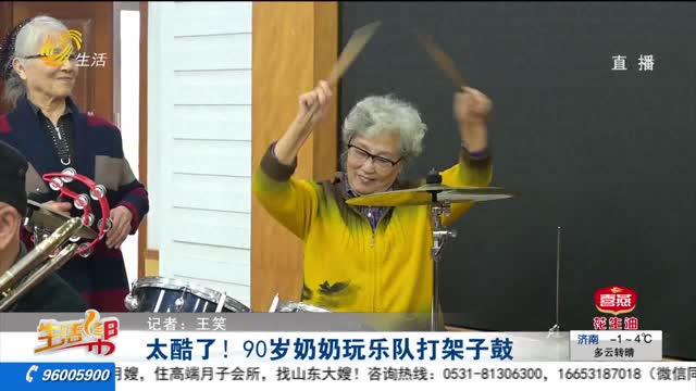 太酷了!90岁奶奶玩乐队打架子鼓