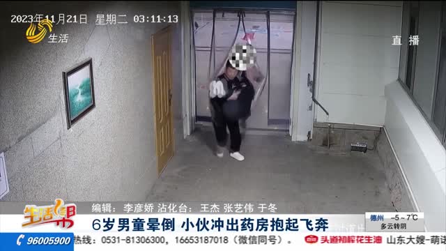 6岁男童晕倒 小伙冲出药房抱起飞奔