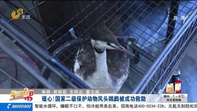 暖心!国家二级保护动物凤头䴙䴘被成功救助
