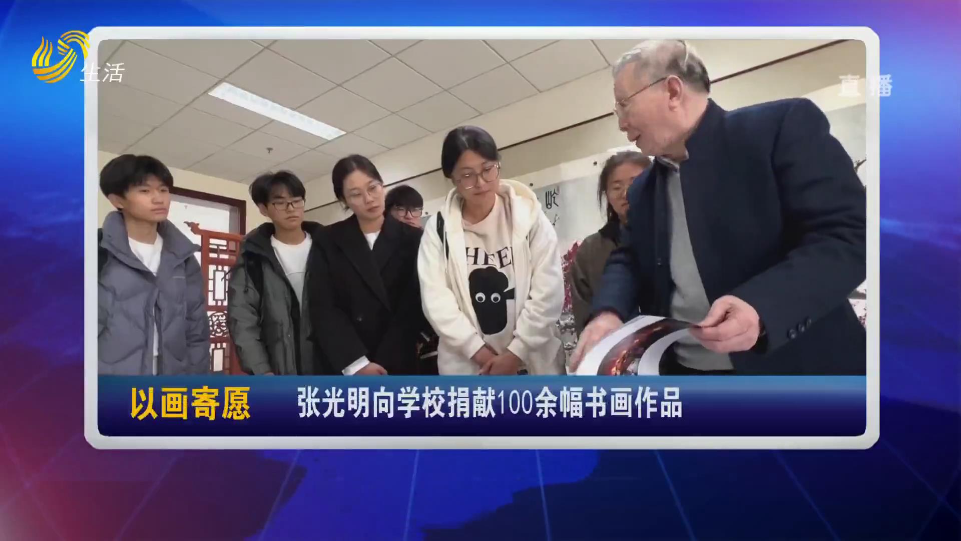 张光明向学校捐献100余幅书画作品