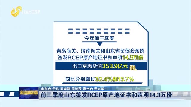 前三季度山东签发RCEP原产地证书和声明14.3万份