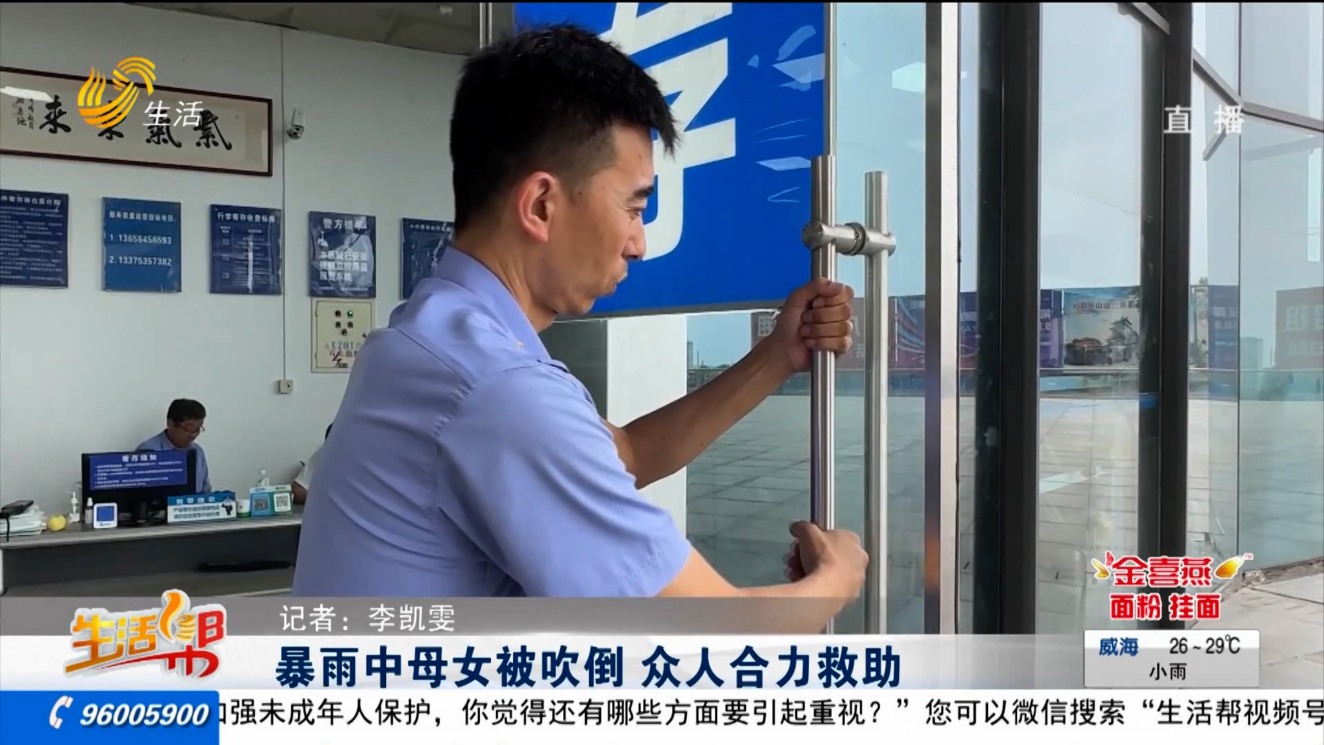 暴雨中母女被吹倒 众人合力救助