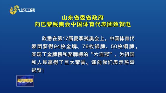 山东省委省政府向巴黎残奥会中国体育代表团致贺电