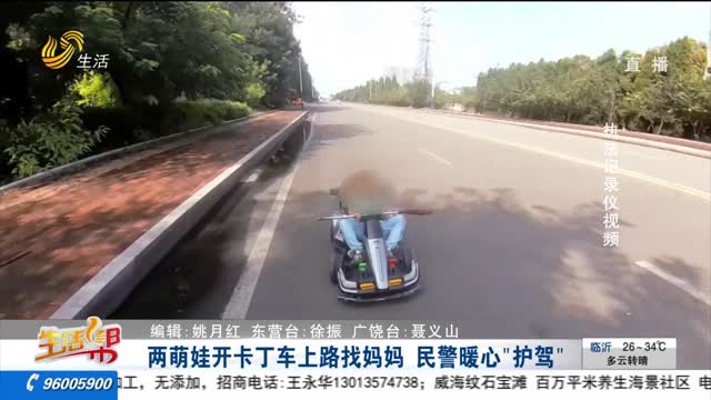两萌娃开卡丁车上路找妈妈 民警暖心“护驾”