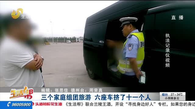 三个家庭组团旅游 六座车挤了十一个人