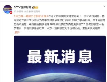 中方谈特朗普认为中国推动谈判 积极促和止战